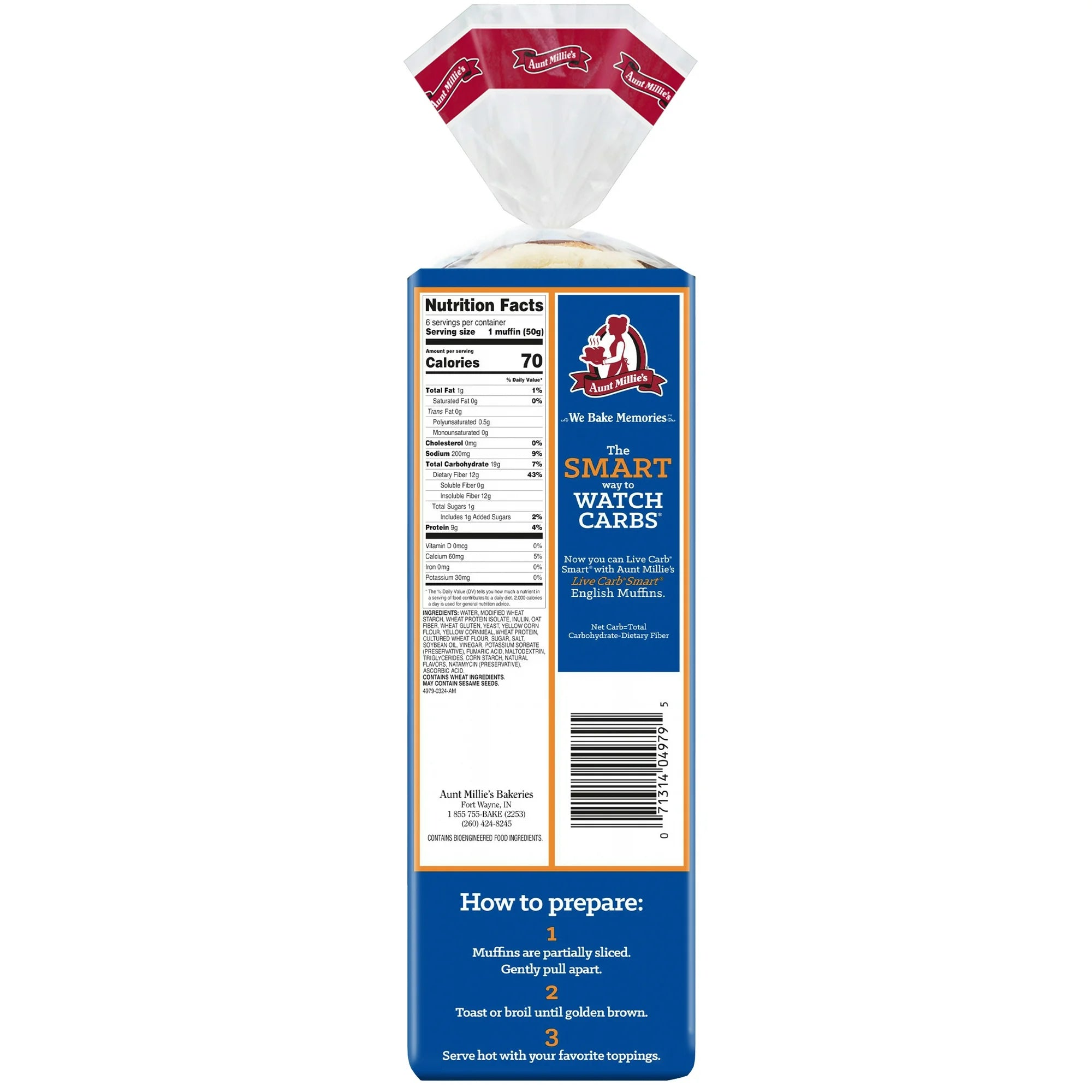 Aunt Millie's - Live Carb Smart - English Muffin - 6 muffins