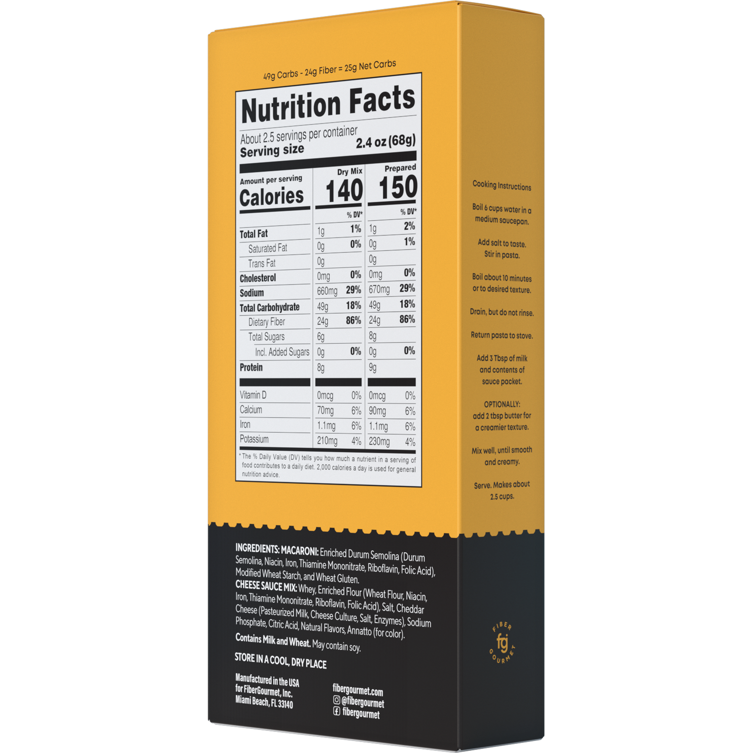 Fiber Gourmet - Dîner de macaronis et fromage légers à haute teneur en fibres - 7,25 oz