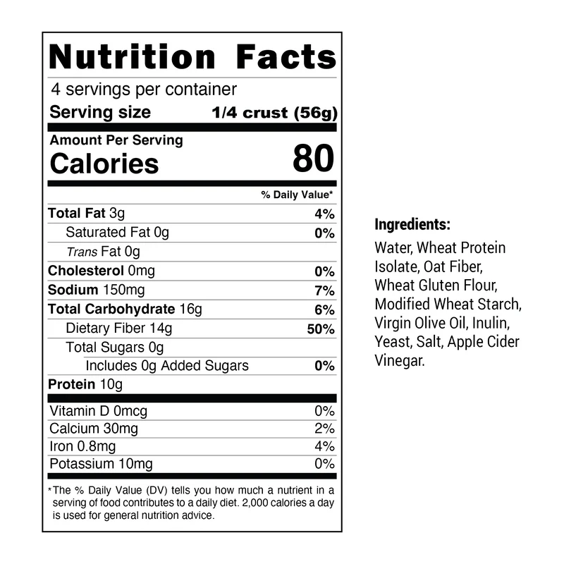 Indulge guilt-free with Inspire Protein Kitchen Pizza Crust, boasting a mere 2 net carbs per serving! Crafted for the health-conscious foodie, this delectable pizza crust delivers unbeatable taste without the guilt of excessive carbs. Pre-baked for convenience, simply load up your favorite toppings and pop it in the oven or toaster oven for a quick 5-minute bake at 350 F. Elevate your pizza experience while staying true to your low-carb lifestyle with Inspire Protein Kitchen Pizza Crust. Order now for a carb-conscious culinary delight!