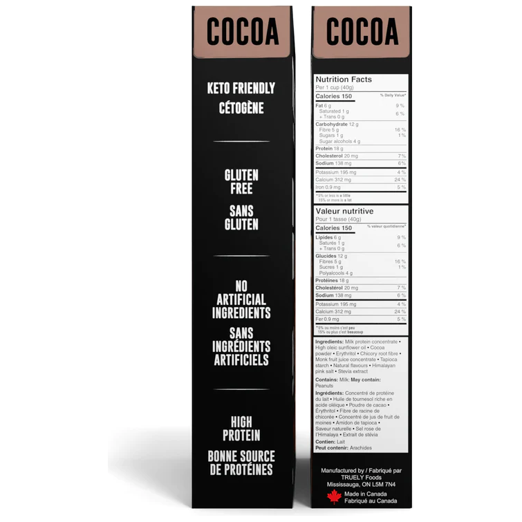 High Protein cereal that’s perfect for mornings or whenever a high-protein healthy snack is needed. The Cocoa flavor has a rich, smooth, and sweet taste that is derived from high quality cocoa.